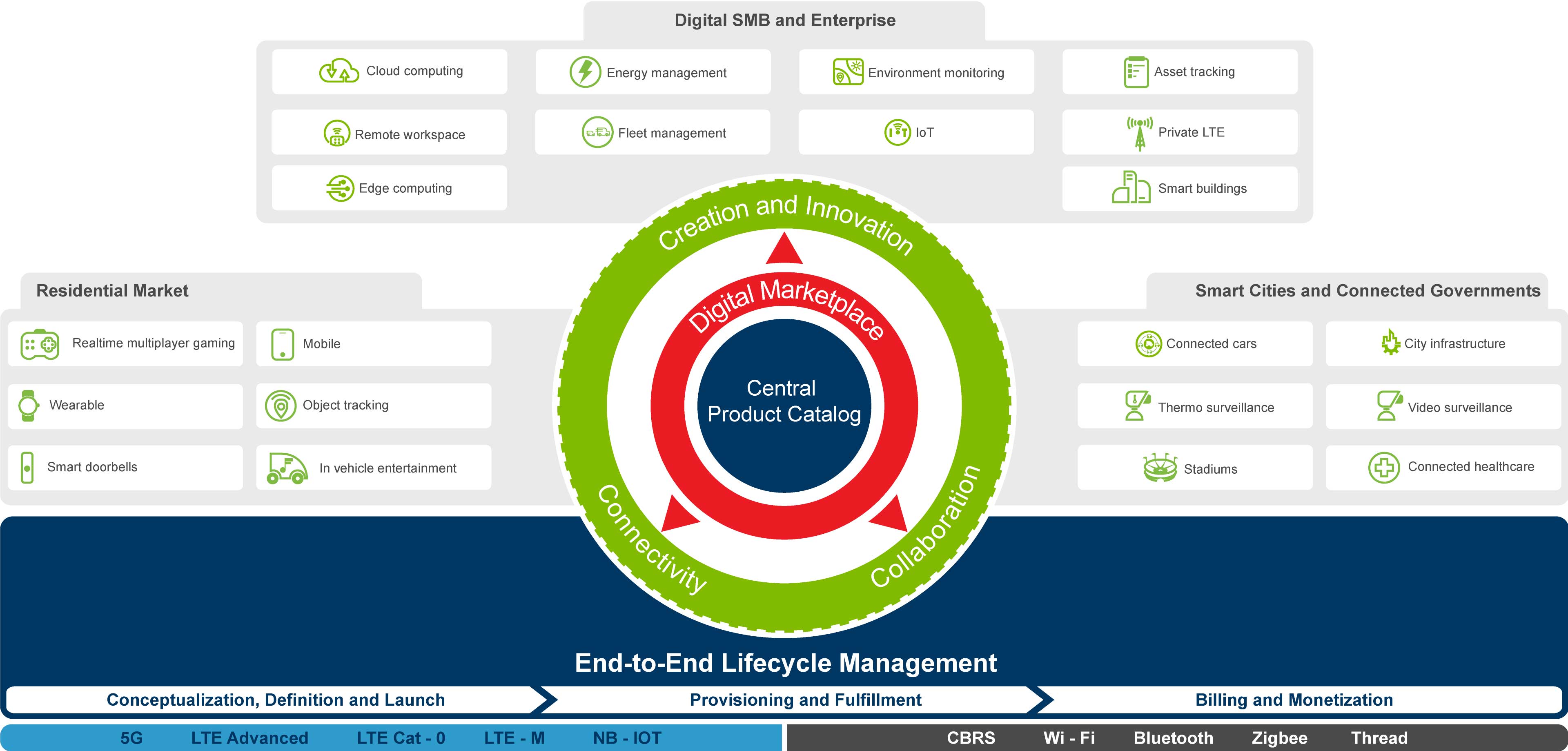 Enabling you to confidently provide an advanced offering for all market segments using Digital Marketplace as a channel to cover the advanced technology needs of Residential Market, Digital Small-Medium-Businesses, Midmarket and Enterprises, as well as high-in-demand offerings and services coverage for Governments, Public Sector and Smart Cities.